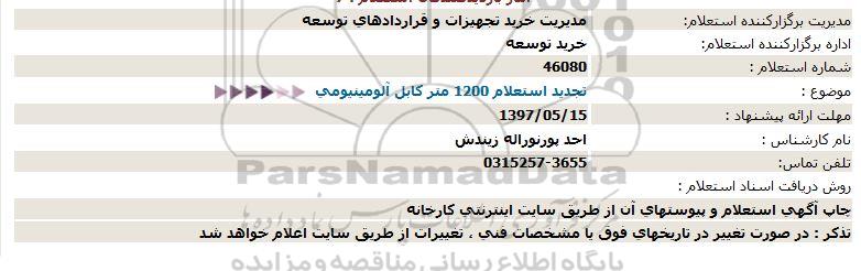 استعلام 1200 متر کابل آلومینیومی- تجدید, استعلام , استعلام 1200 متر کابل آلومینیومی- تجدید
