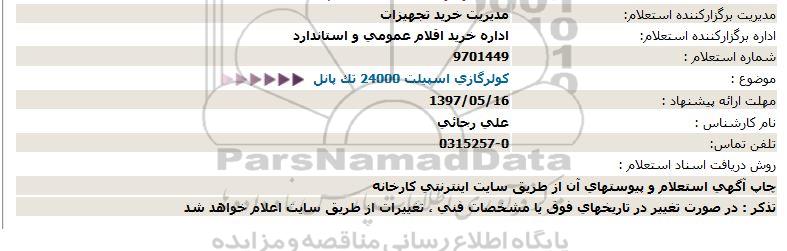 اداره برگزارکننده استعلام: اداره خرید اقلام عمومی و استاندارد