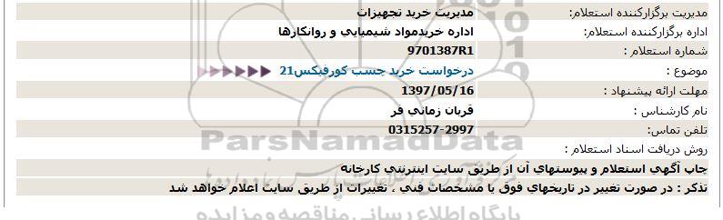 اداره برگزارکننده استعلام: اداره خرید مواد شیمیایی و روانکارها