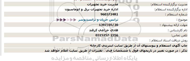 اداره برگزارکننده استعلام: اداره خرید تجهیزات برق و اتوماسیون