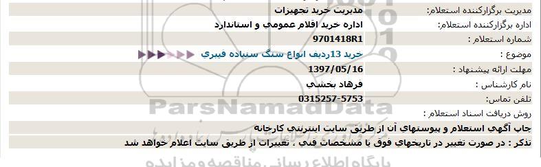 موضوع : استعلام خرید 13 ردیف انواع سنگ سنباده فیبری