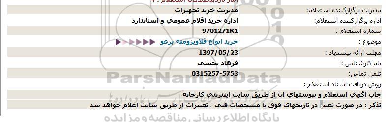 اداره برگزارکننده استعلام:     اداره خرید اقلام عمومی و استاندارد