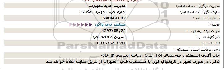 اداره برگزارکننده استعلام: اداره خرید تجهیزات مکانیک
