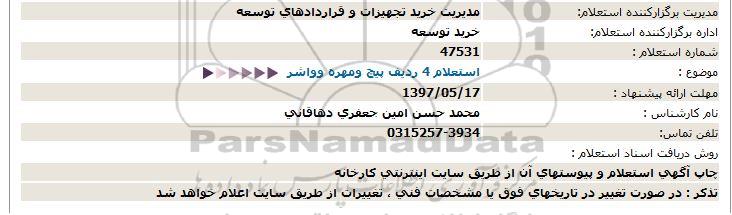 استعلام 4 ردیف پیچ و مهره و واشر, استعلام, استعلام 4 ردیف پیچ و مهره و واشر