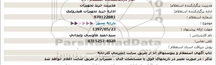 اداره برگزارکننده استعلام: اداره خرید تجهیزات هیدرولیک