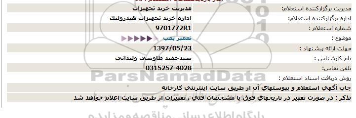 اداره برگزارکننده استعلام: اداره خرید تجهیزات هیدرولیک