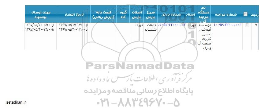 نام دستگاه مزایده گزار: موسسه آموزش علمی کاربردی صنعت آب و برق