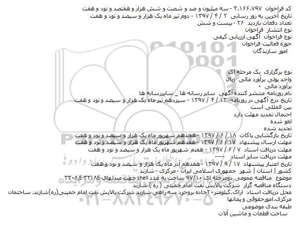 مناقصه ساخت یه عدد shell جهت مبدلهای از کلیه افراد متخصص و شرکتها واجد شرایط دعوت به عمل میآید در مناقصه با کد خبرگزاری پارس نماد: 1258504 شرکت نمایند.