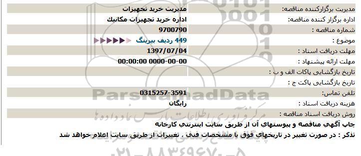 اداره برگزارکننده استعلام: اداره خرید تجهیزات مكانیک
