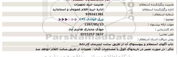 استعلام ورق فولادی , استعلام, استعلام ورق فولادی