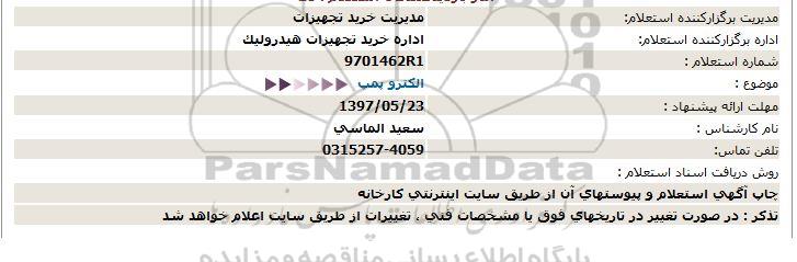 اداره برگزارکننده استعلام: اداره خرید تجهیزات هیدرولیک