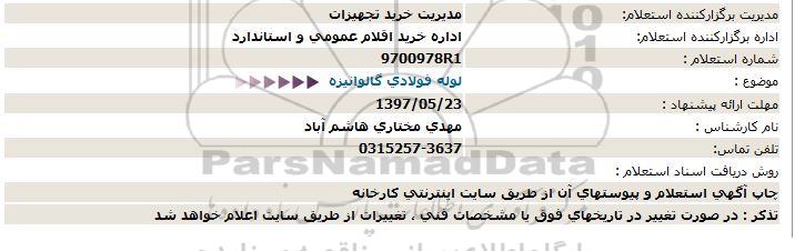 اداره برگزارکننده استعلام: اداره خرید اقلام عمومی و استاندارد