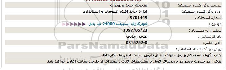 اداره برگزارکننده استعلام: اداره خرید اقلام عمومی و استاندارد