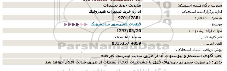 اداره برگزارکننده استعلام: اداره خرید تجهیزات هیدرولیک