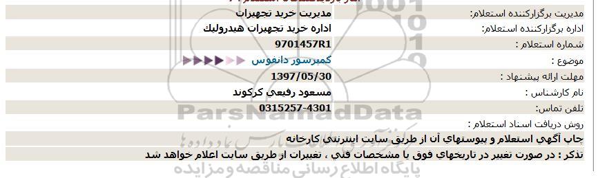 اداره برگزارکننده استعلام: اداره خرید تجهیزات هیدرولیک