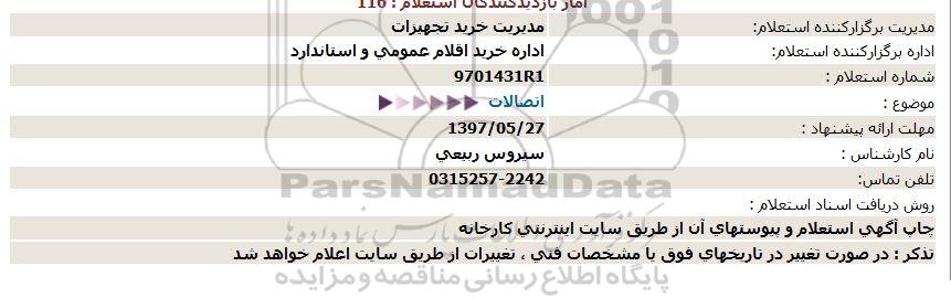 اداره برگزارکننده استعلام: اداره خرید اقلام عمومی و استاندارد