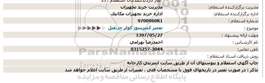 اداره برگزارکننده استعلام: اداره خرید تجهیزات مکانیک