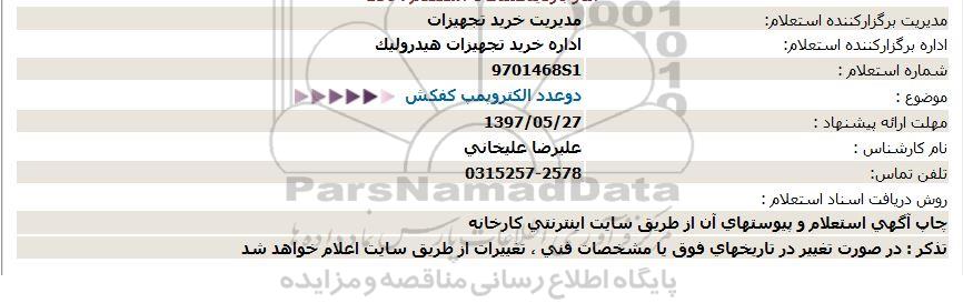 اداره برگزار کننده استعلام: اداره خرید تجهیزات هیدرولیک