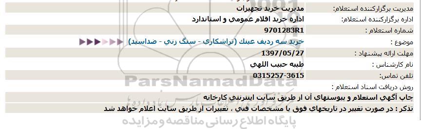 استعلام عینک تراشکاری 97.05.27, ستعلام , استعلام عینک تراشکاری 97.05.27
