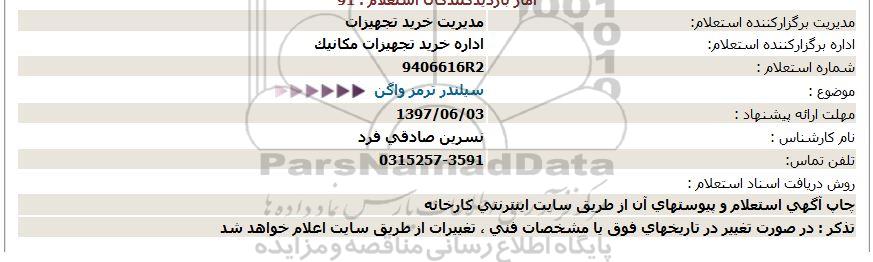 استعلام سیلندر ترمز واگن , استعلام سیلندر ترمز واگن