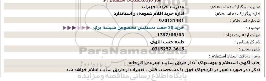 اداره برگزارکننده استعلام: اداره خرید اقلام عمومی و استاندارد