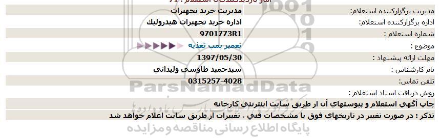اداره برگزارکننده استعلام: اداره خرید تجهیزات هیدرولیک