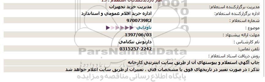 اداره برگزارکننده استعلام: اداره خرید اقلام عمومی و استاندارد