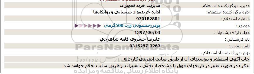 استعلام پودر رختشوئی وزن 500 گرمی, استعلام , استعلام پودر رختشوئی وزن 500 گرمی
