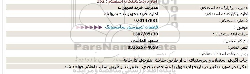 اداره برگزارکننده استعلام: اداره خرید تجهیزات هیدرولیک