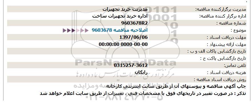اداره برگزار کننده مناقصه: اداره خرید تجهیزات ساخت