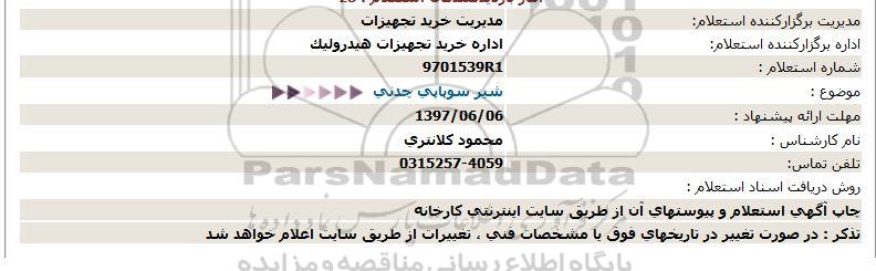 استعلام شیر سوپاپی چدنی, استعلام, استعلام شیر سوپاپی چدنی