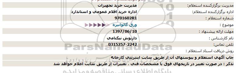 اداره برگزارکننده استعلام: اداره خرید اقلام عمومی و استاندارد
