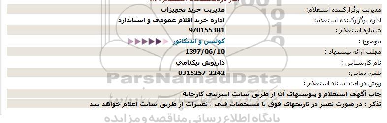 اداره برگزار کننده استعلام: اداره خرید اقلام عمومی و استاندارد