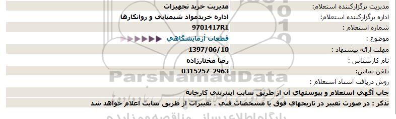 اداره برگزار کننده استعلام: اداره خرید مواد شیمیایی و روانکارها