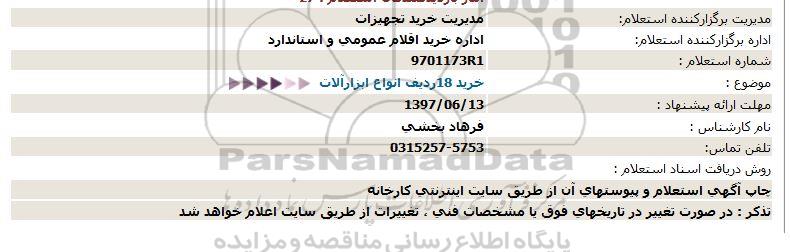 استعلام خرید 18ردیف انواع ابزارآلات , استعلام, استعلام خرید 18ردیف انواع ابزارآلات