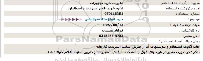 اداره برگزارکننده استعلام: اداره خرید اقلام عمومی و استاندارد
