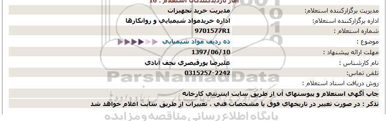 اداره برگزارکننده استعلام: اداره خرید مواد شیمیایی و روانکارها