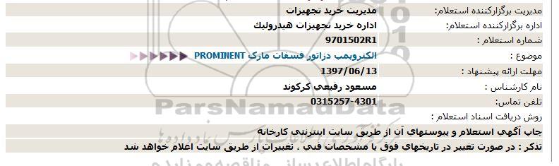 اداره برگزارکننده استعلام: اداره خرید تجهیزات هیدرولیک