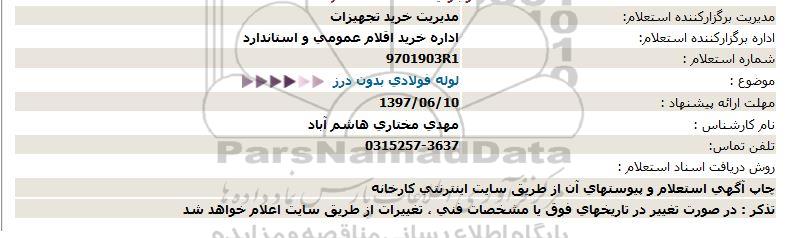 استعلام لوله فولادی بدون درز, استعلام, استعلام لوله فولادی بدون درز