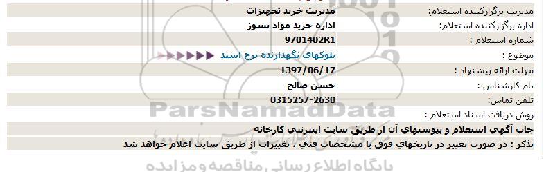 مناقصه بلوکهای نگهدارنده برج اسید , مناقصه بلوکهای نگهدارنده برج اسید