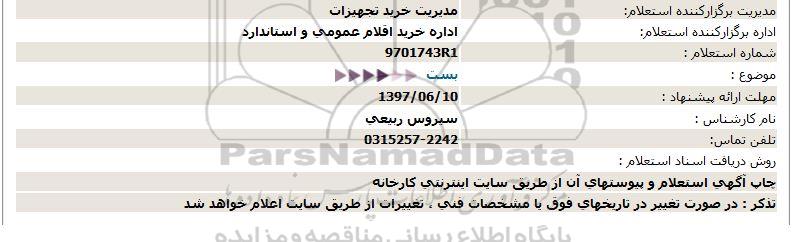 اداره برگزارکننده استعلام: اداره خرید اقلام عمومی و استاندارد
