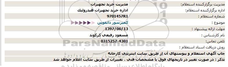 اداره برگزارکننده استعلام: اداره خرید تجهیزات هیدرولیک