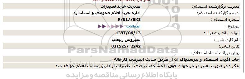 اداره برگزارکننده استعلام: اداره خرید اقلام عمومی و استاندارد