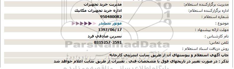استعلام موتور سیلندر , استعلام, استعلام موتور سیلندر