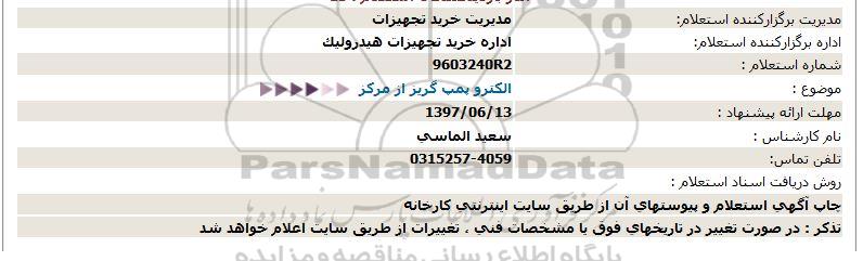اداره برگزارکننده استعلام: اداره خرید تجهیزات هیدرولیک