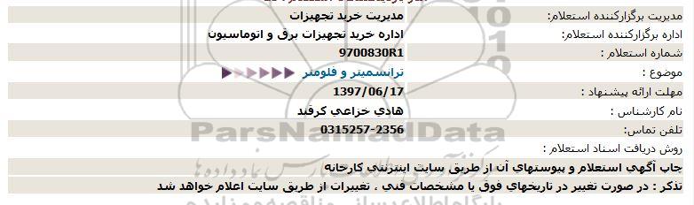 استعلام ترانسمیتر و فلومتر , استعلام , استعلام ترانسمیتر و فلومتر