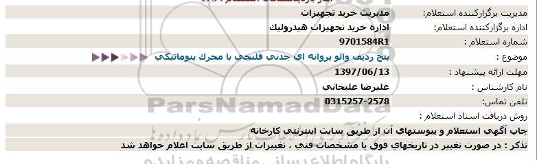 اداره برگزارکننده استعلام: اداره خرید تجهیزات هیدرولیک