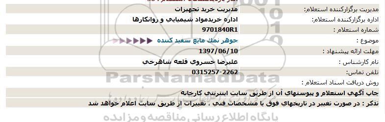 اداره برگزارکننده استعلام: اداره خرید مواد شیمیایی و روانکارها