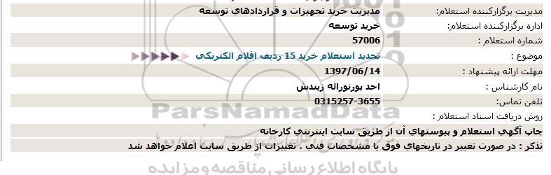 تجدید استعلام خرید 15 ردیف اقلام الكتریكی , استعلام , تجدید استعلام خرید 15 ردیف اقلام الكتریكی