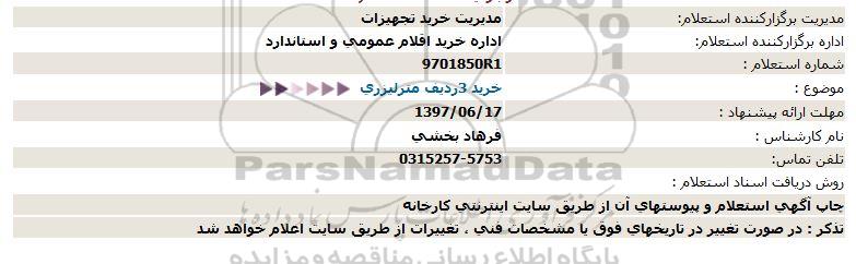 اداره برگزارکننده استعلام: اداره خرید اقلام عمومی و استاندارد